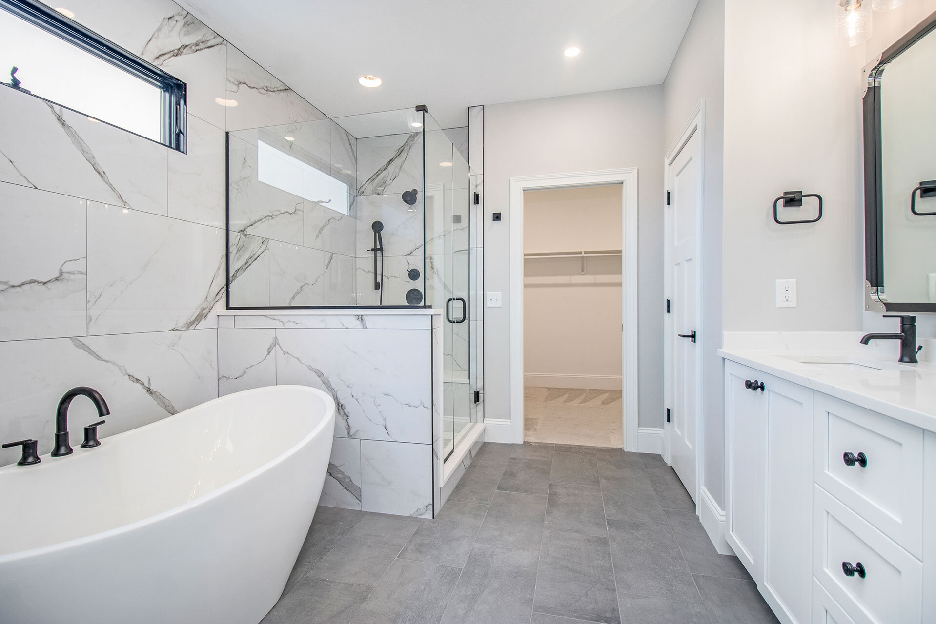 - Master suite with free-standing tub & custom tile shower