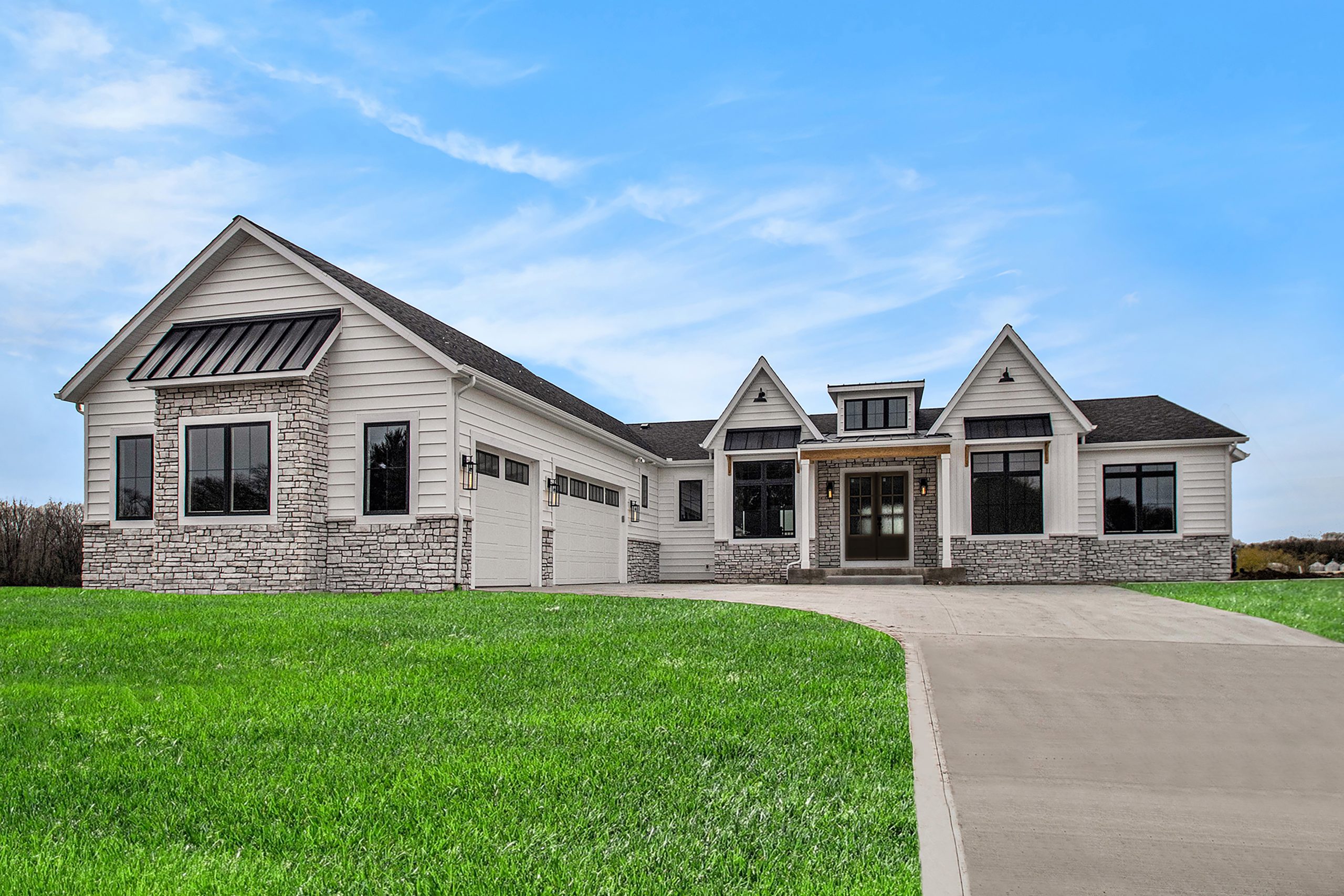 This custom built 5 bedroom ranch provides the perfect blend of amenities for an active lifestyle, with multiple areas to kick back and get cozy when the homeowners are ready to relax. Take a dip in the pool, work out in the home gym, or challenge friends and family to a round of golf in the basement simulator with observation deck. Enjoy a relaxing meal prepared in the custom white oak kitchen, then enjoy it in front of the outdoor fireplace on the upper deck overlooking the lake and sunset beyond.